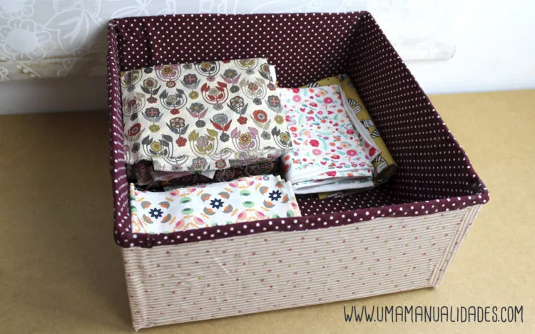 Podemos decorar las cajas de cartón de múltiples maneras. Utilizando papel o servilletas para forrarlas, cubrirlas de tela o aplicando un poco de pintura en spray.