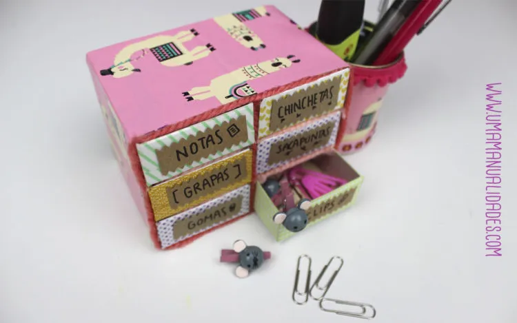 Aquí podéis ver algunas ideas fáciles para la vuelta al cole inspiradas en las llamas como ésta cajonera de cerillas o la casita para notas. En ambas opciones se ha utilizado el papel de regalo para cubrir el cartón y cómo veis el resultado es estupendo.