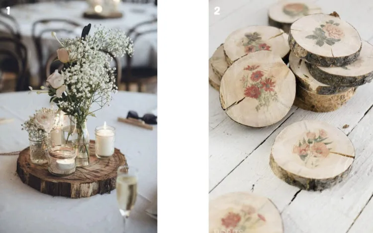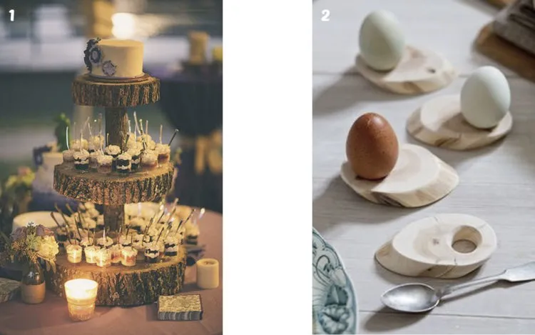 Uno de los usos más habituales, adornar mesas con esencia natural. No solo para eventos especiales sino también para el día a día, encontramos bajoplatos con troncos, posavasos, incluso adornos y centros de mesa fantásticos realizados con troncos.