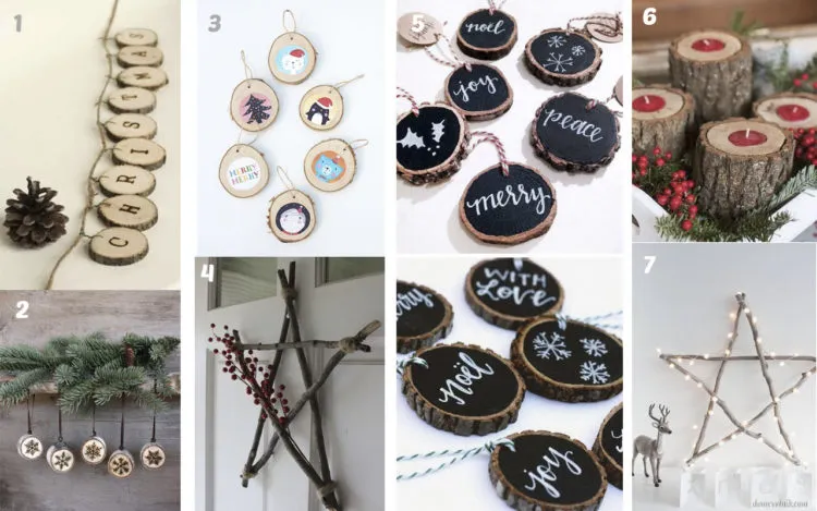También para hacer adornos los troncos cortados nos vendrá genial podemos pintarlos de distintas maneras o incluso dibujar con la ayuda de un pirografo algunos motivos navideños en su superficie. Otra idea muy original es utilizarlos para hacer guirnaldas con mensajes, portavelas o estrellas XL muy decorativas.