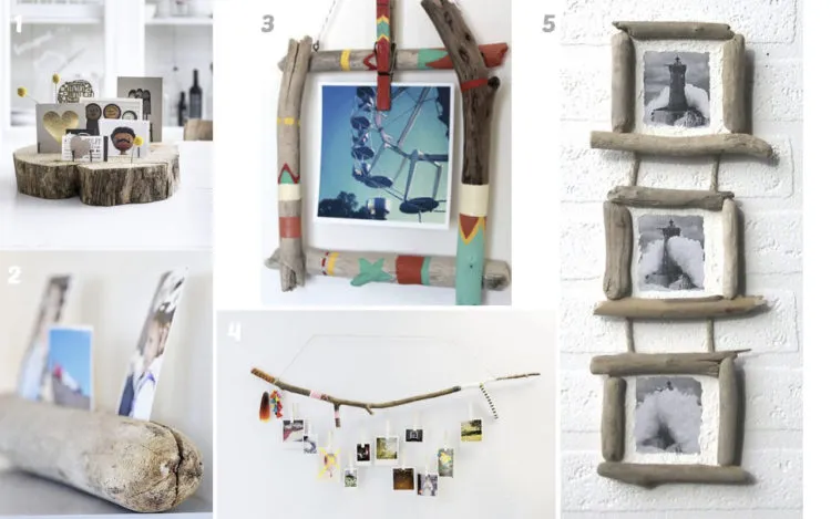 Otra manualidad muy fácil que podemos hacer con troncos son los portarretratos o los marcos para lucir nuestras fotos y nuestros dibujos. Podemos utilizar los troncos y palitos a modo de marco o bien para sujetar nuestras imágenes de distintas formas. Aquí tenéis algunos ejemplos muy chulas que os pueden servir para decorar utilizando fotografía y troncos de una forma muy original.