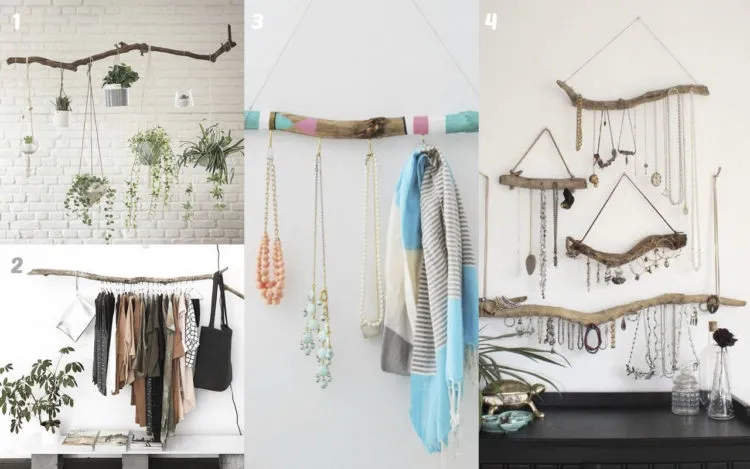 Además de los troncos también podemos utilizar las ramas para hacer manualidades decorativas y nos pueden ser de gran utilidad. Soy contamos con alguna rama bonita y especial, podemos utilizarla a modo de soporte para colgar distintos objetos en nuestro hogar. No solo nos ayudará a portar una esencia muy natural a nuestra decoración, sino que además puede ser muy práctico a la hora de organizar algunos elementos como por ejemplo nuestra ropa, los complementos y collares o bien algunas plantitas decorativas.